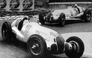 The power of the Germans with their 5.66 litre, 645 bhp, Mercedes W125 running on a mix of alcohol, acetone and nitro, consuming 1l per km and the 6 litre, 520 bhp, Auto Union's effectively leave everything else in the shadows. Before this decisive race Mercedes and Auto Union are level on points at the top of the championship. With the absence of Nuvolari, the German teams dominate the practice sessions, five of their seven cars clock times of under 1'50" and fill up the first two lines of the grid, only Farina, driving an Alfa Romeo 312, gets near them with a time of 1'53.4" and none of the three Maserati's are able to get in under two minutes. After a fierce duel with his fellow Mercedes driver Von Brauchitsch, Caracciola takes pole position with a time of 1'47.5", beating his previous record by nine seconds. | |||||||||||||||||||||||||||||||||||||||||||||||||||||