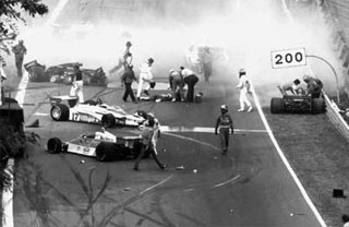 At the time there was more concern for Brambilla, who was hit on the head by a flying wheel and was slumped comatose in his car (he later recovered and drove on in F1 until 1980). Peterson's life was not seen to be in any danger. The injured drivers were taken to hospital in Milan and the race was restarted after the track was cleaned up.